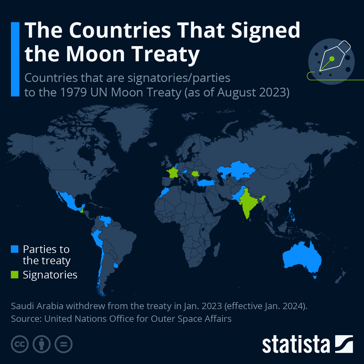 It seems the Moon Agreement, which respects Artemis’ wishes, and the Artemis Accords, which don’t, are in stark disagreement. Yet Australia, France, India, Mexico, the Netherlands and Romania have signed both. Saudi Arabia had signed both, but momentously, in 2023 it withdrew it’s signature from the Moon Agreement — an extremely rare occurrence in international law. It did so to give preference to the Artemis Accords, a non-binding, political document.